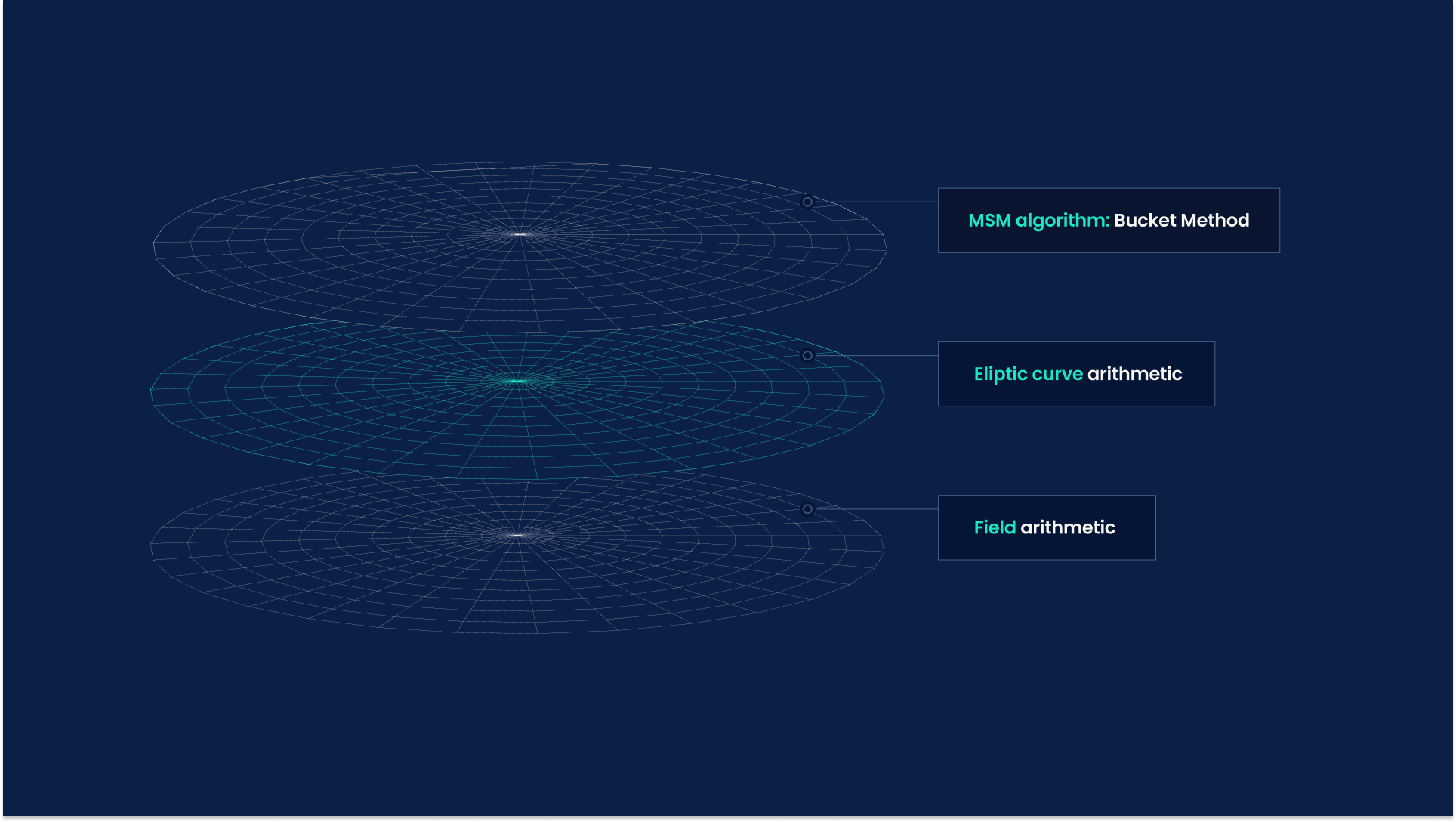 All the techniques we used are pretty well-known in the world of elliptic curve cryptography. You can think of implementing MSM as implementing a multi-layer library, where every layer introduces a new abstraction.