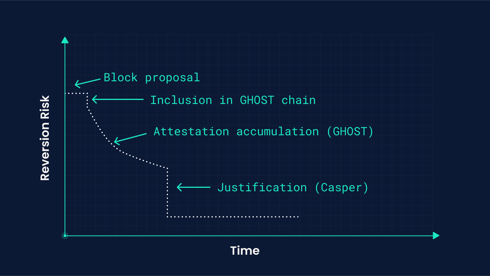 Ethereum’s consensus model, as well as the history of its development, is well documented, so for this post we’ll assume working knowledge of the main concepts—if you’re not yet familiar, the work of a thorough explanation is best left to the Gasper paper. Although we’ll give brief recaps of the core components of Ethereum’s consensus, this post is intended to act as a field guide for cross-chain development, giving quick references for the distributions across latency and the reversion rate we can expect at a given stage in the protocol.