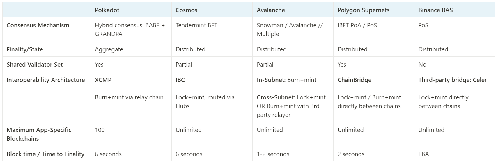 In this piece, we take a detailed look into the various forms of architecture that have been developed in pursuit of this vision and compare the tradeoffs they make around shared consensus, capacity and interoperability. Specifically we look at five pieces of standalone multichain architecture: Polkadot, Cosmos, Avalanche, Polygon Supernets and Binance BAS.
