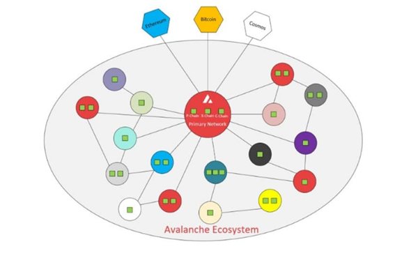 Under Avalanche’s current form, there is one primary network secured by all participating Avalanche validators, with three blockchains under it: