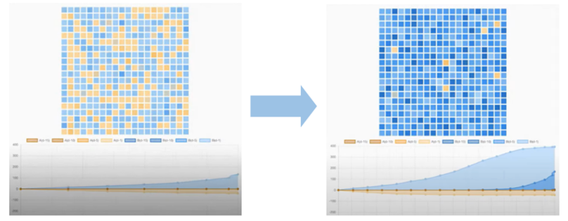 In addition to sharing consensus mechanism, individual blockchains can also share validator sets. In the examples below, validator sharing can range from a single validator set across all chains to multiple validator sets where each set provides consensus for some but not all underlying blockchains to mutually exclusive validator sets for each underlying blockchain. Shared validator sets offer concentrated security guarantees, in that the marginal risk for each new blockchain is lower, but the impact of a compromise in a critical mass of nodes could adversely impact all chains secured by that validator set. The ideal outcome for this parameter is a single validator set that is sufficiently distributed and provides shared security guarantees to a large number of chains. On the other hand, the most risky outcome is a single validator set with a small number of concentrated nodes.