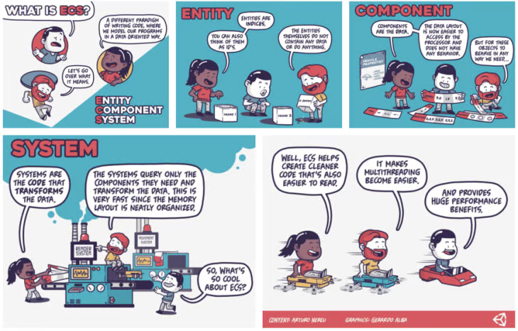 ECS, or (”Entity Component System”), is an architecture that’s been widely adopted in recent years for video games. Compared to classic Object-Oriented Programming (OOP), ECS has a number of benefits for video games as it separates data from behavior. In traditional web2 games, this has great performance boosts (improved cache locality) while also maintaining better logic controls while developing the game itself.