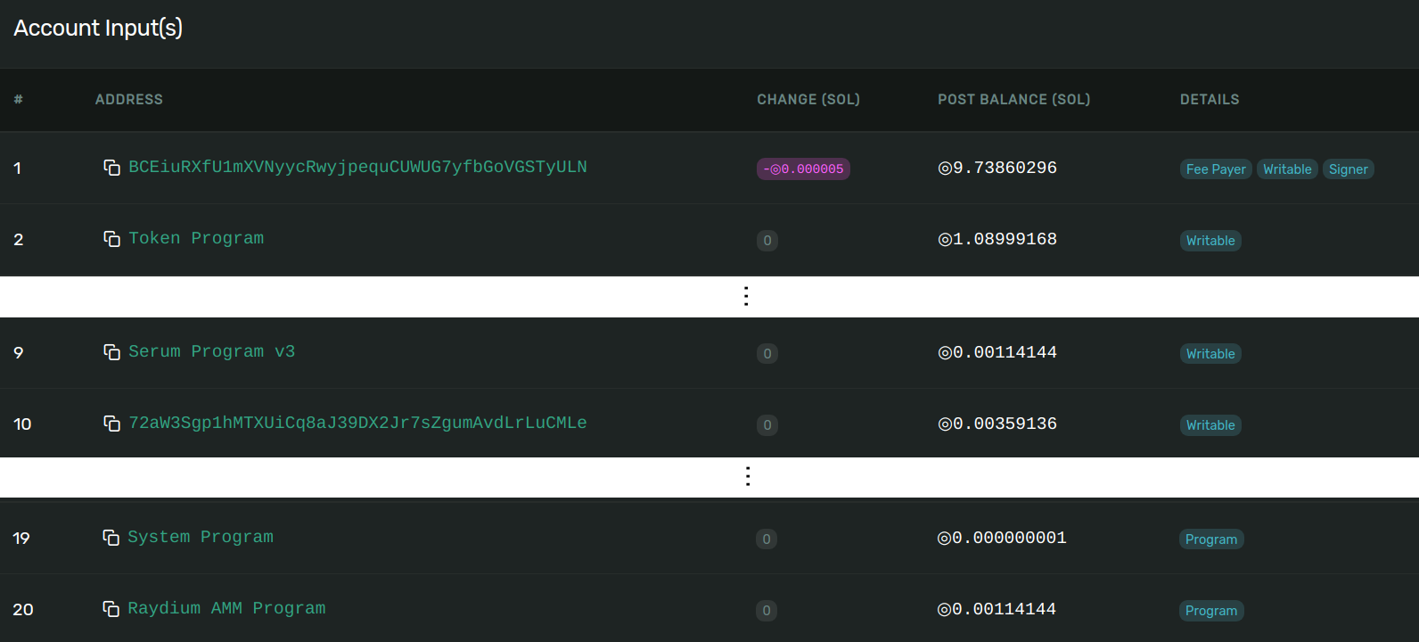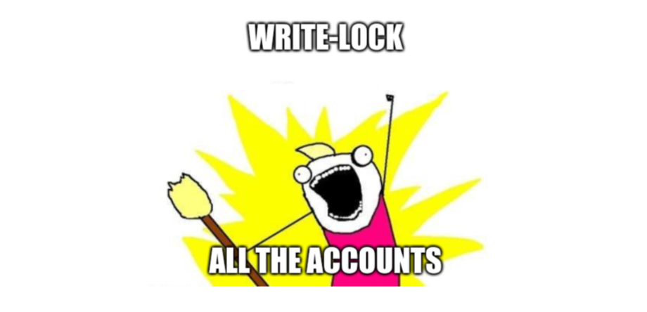 One of the bot authors clearly didn't know that, and their transactions write-locked a whopping 18 accounts. Unfortunately, this included the global program managing SPL tokens, as well as the Serum program: