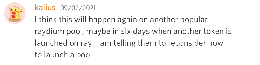 So, when Raydium announced the GRAPE launch for Sept 14, 12:00 UTC, with the Star Atlas fresh in everyone's minds, nobody thought to ask them to maybe wait until the 1.6.23 release, assuming that surely, "someone else" has already considered this—after all, this is much too obvious of a thing to miss!