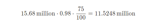 Week 2 - 98% * 19.6M = 19.208M