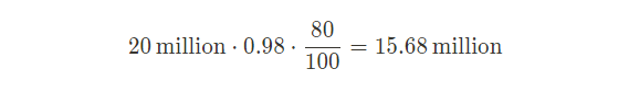 Week 1 - 98% * 20M = 19.6M