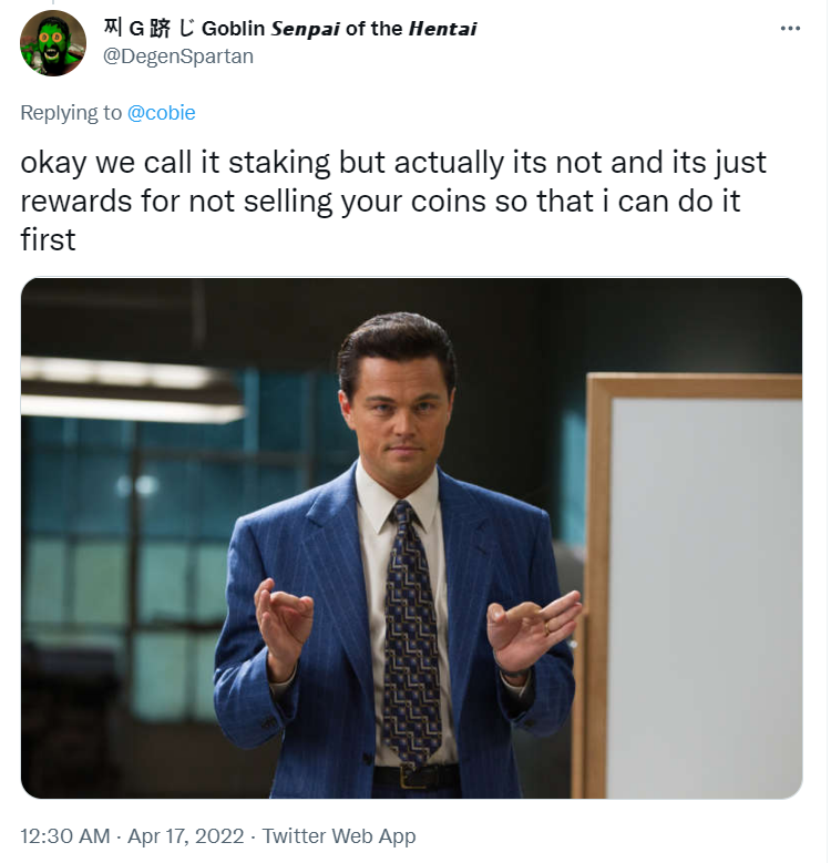 We can also use this lens to understand Cobie’s critique against the Bored Ape Yacht Club for rewarding non-productive "staking." The rewards provided were unlikely to stimulate any real, value-providing use cases, and mostly looked like a way of letting early investors cash out. In prioritizing value transfer (from long-term and passive participants to short-term and extractive ones) over value creation, the mechanism weakened the long-term foundations of the protocol.