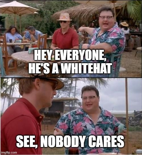 - They could do nothing. We suspect many whitehats — especially institutional ones — choose the passive route, given the reputational and legal risks embedded in the other choices.